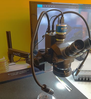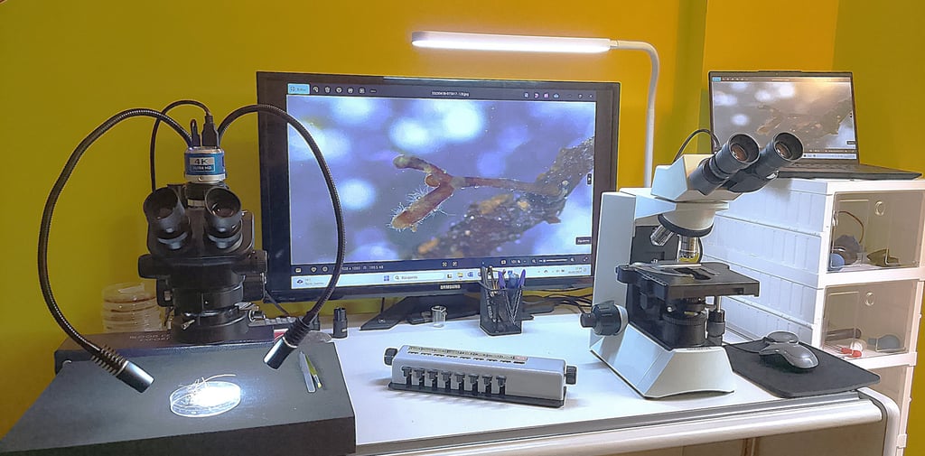 Contaminantes diferentes a Tuber: se realiza una primera observación con el estereomicroscopio apoyado con el microscopio óptico para estimar el porcentaje de raíces infectadas con tuber melanosporum, porcentaje de ápices no micarrizados y porcentaje de micorrizas contaminantes de otras especies .